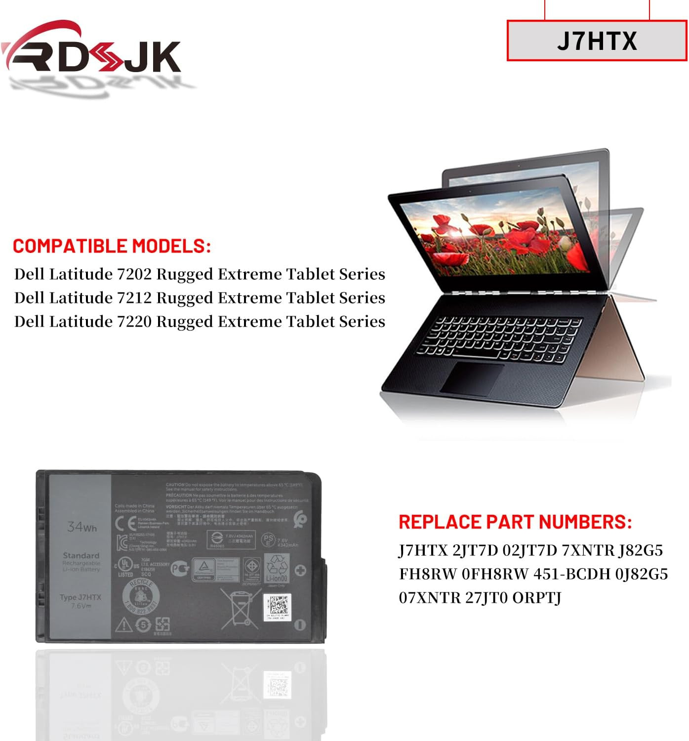 Dell Latitude 12 7202 7212 7220 Series, PN: 7XNTR FH8RW J7HTX T03H Original Laptop Battery