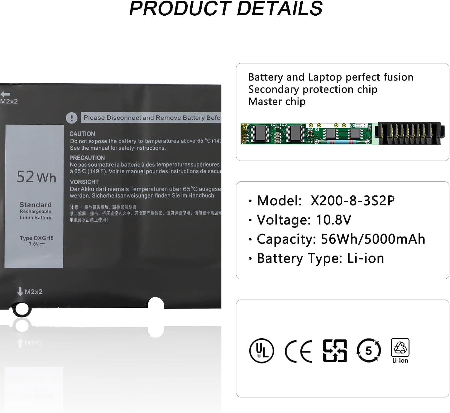 | Support Laptops | DXGH8 Battery For Dell XPS 13 9370 9380 Dell Inspiron 13 3301 5390 7390 Dell Vostro 13 5390 Series |