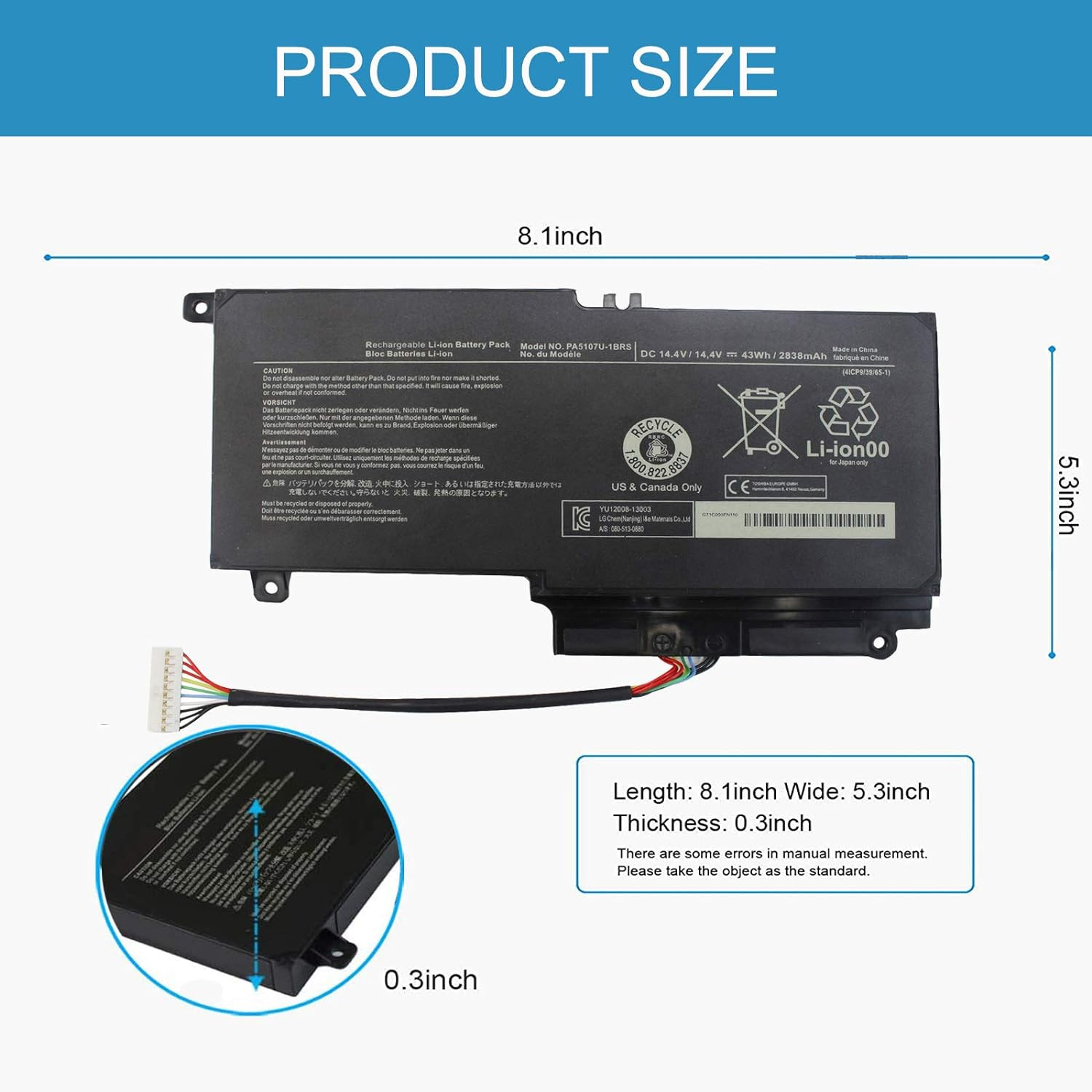 Package Includes► 1 Pcs Battery For Toshiba Satellite L40 L45 L50 L55 P50 P55 S50 S55 Series, PN: PA5107U PA5107U-1BRS