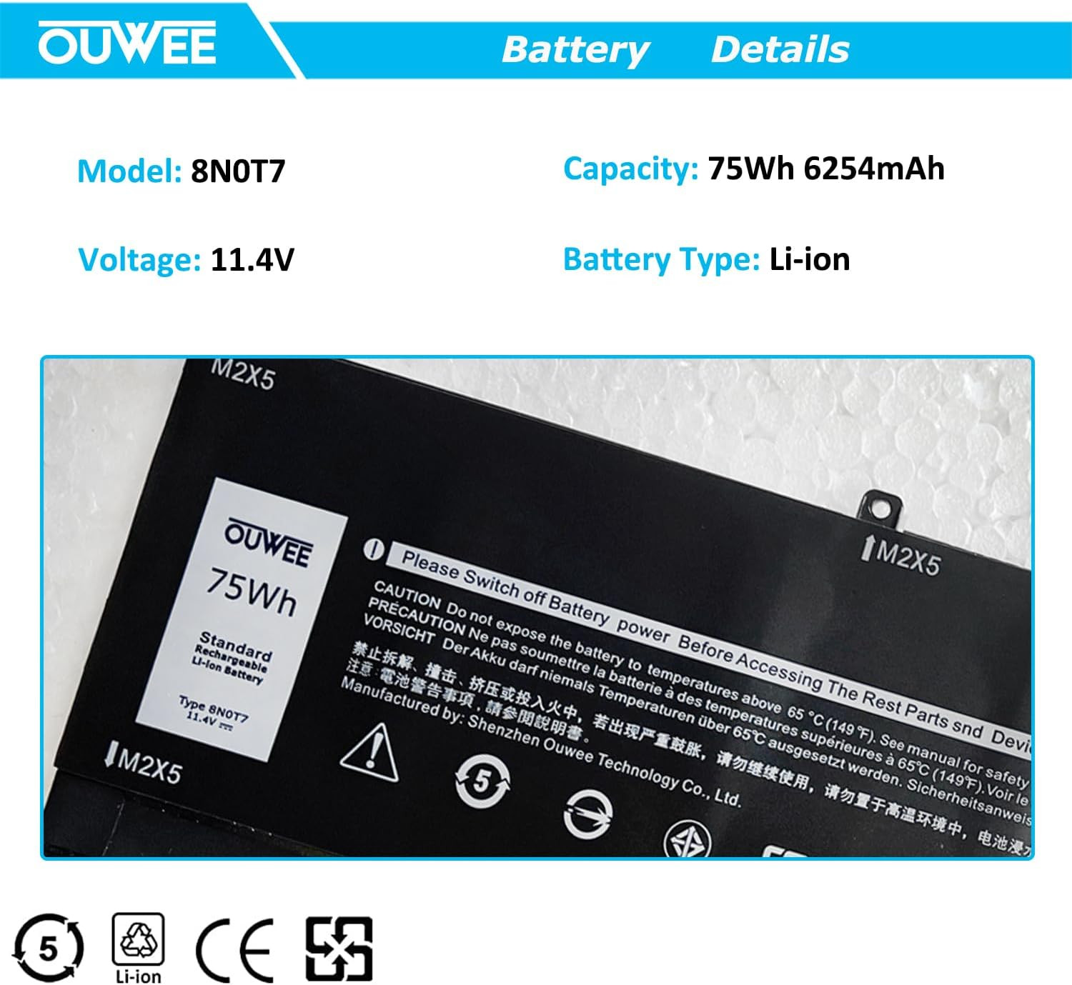 | Support Laptops | 8N0T7 Battery For Dell XPS 15 9575 Precision 5530 Series |